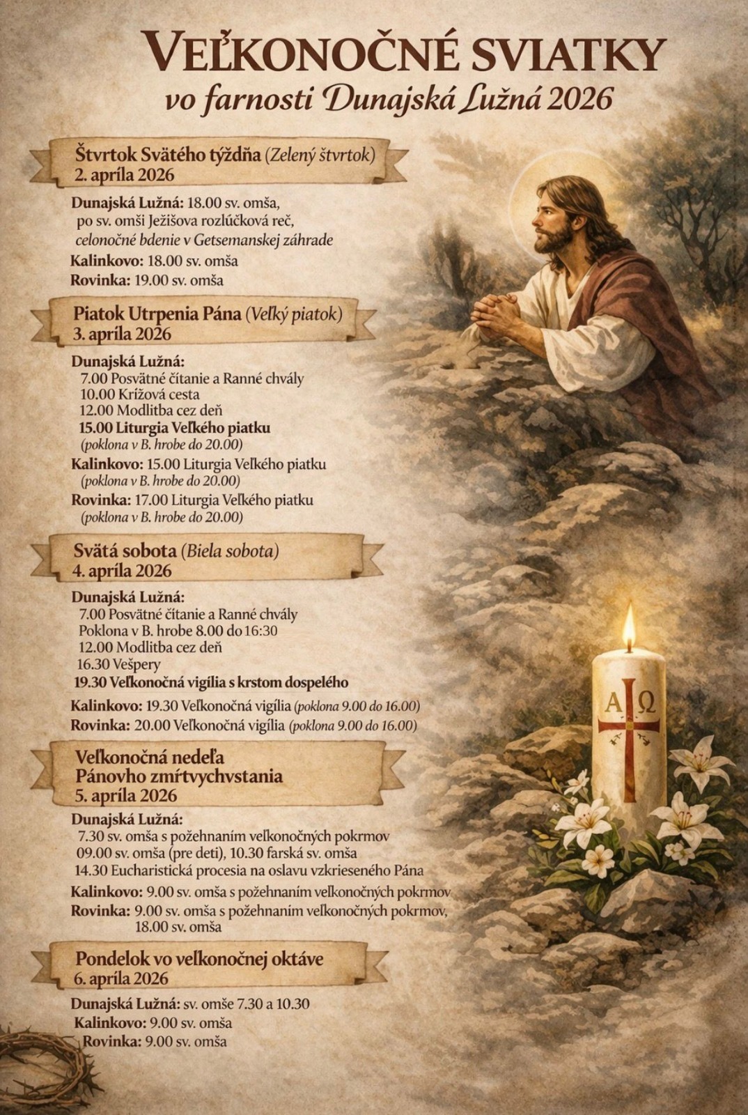 NEDEĽA: 07:30, 09:00, 10:30