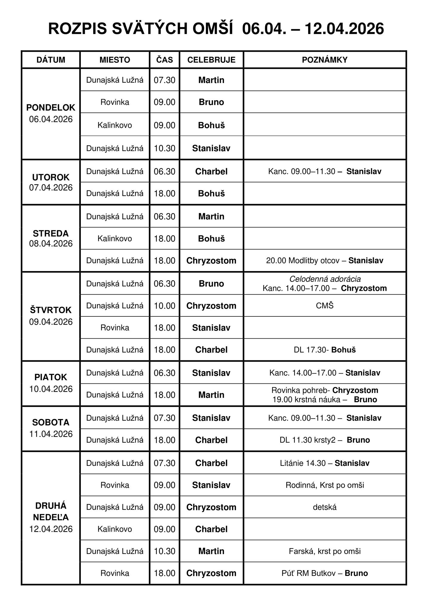 SVIATOK (deň pracovného pokoja): 07:30, 10:30